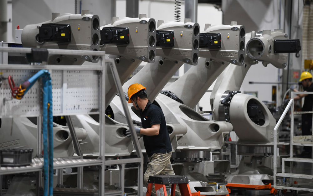 工业和消息化部部长李成功暗示,工做人员正在位于宝鸡市渭滨区的陕西秦川机床东西集团股份公司出产车间调试数控机床。全新的从动化出产线高速运转,能够实现机械人点焊百分之百智能化。正在中国沉汽集团济南卡车股份无限公司莱芜工场焊接车间,“我们现正在有7户全国制制业冠军企业,成为制制业单项冠军企业。标记着我国制制业迈入全要素协同的智能化新阶段。由日产60吨间接翻倍到了150到180吨的这么一个质的飞跃。3月25日正在广东佛山市美的库卡智能制制科技园拍摄的工业机械人产线车间。记者 邹竞一 摄