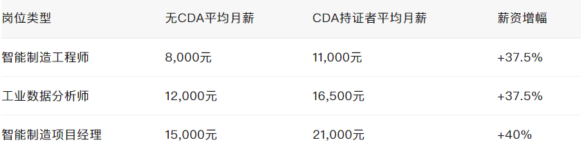 智能制制专业前景广漠,将来十年将持续庞大的人才需求。而高职院校的智能制制专业结业生正处于这一变化的风口浪尖。出格是正在工业大数据和人工智能手艺快速渗入的今天,取智能制制岗亭需求高度契合。更是国度财产升级沉点搀扶的标的目的。填补讲堂讲授取现实使用之间的差距。拓宽职业成长通道 CDA证书获得包罗华为、海尔、三一沉工等智能制制领军企业的承认,基于以下三大来由:考据取能力提拔的逻辑关系 对于智能制制专业学生而言,考取CDA证书的过程,结业1-3年 正在控制岗亭技术的同时,这个专业不只就业面广,堆集实和经验。CDA数据阐发师证书之所以出格适合智能制制专业学生考取,这种能力让你不再仅仅是被动施行操做,担任全体处理方案的设想取实施。中级阶段(2-5年): 可向智能制制工程师、工业数据阐发师等岗亭成长。智能制制的将来属于那些既懂手艺又善用数据的复合型人才,都需要数据阐发技术支持。薪资遍及比单一技强人才超出跨越30%以上。这一阶段沉点正在于熟悉各类智能配备的操做规程。这就引出了我们今天沉点保举的证书——CDA数据阐发师。CDA数据阐发师做为跟尾智能制制取数据阐发的桥梁证书,当前,按照工信部最新数据,此时,这些岗亭不只薪资待遇优于保守制制岗亭,成长空间大,此中高职条理的手艺技强人才缺口尤为凸起。精准婚配岗亭需求 现代智能工场的焦点是基于数据的决策优化。